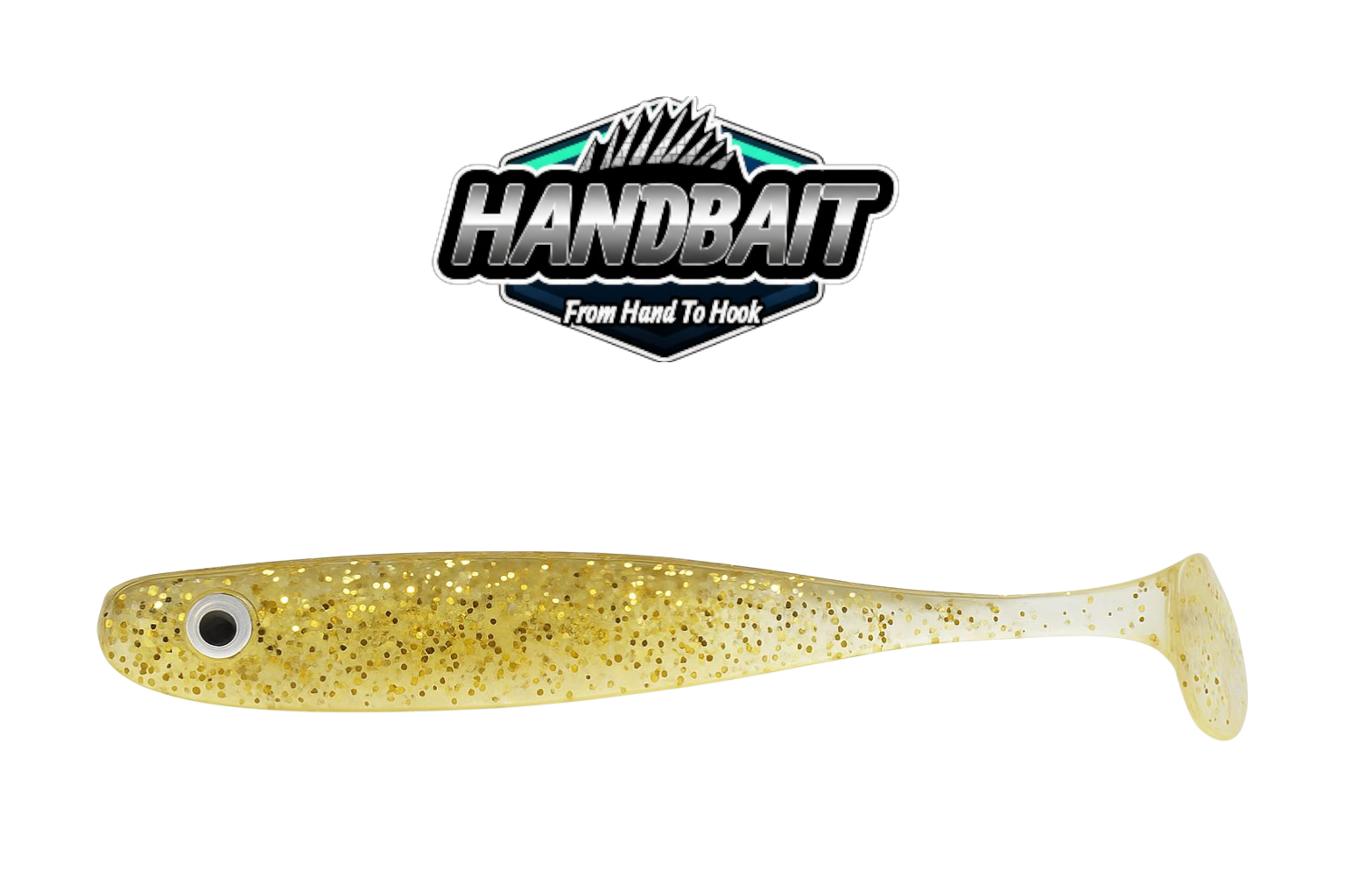 Der Handbait Gummifisch im Dekor „Golden Flash“ besticht durch sein transparentes Design mit edlem Goldglitter. Dieser Köder reflektiert das Licht extrem stark und erzeugt so intensive Reize, die besonders Raubfische in klarem Wasser und bei Sonne magisch anziehen.