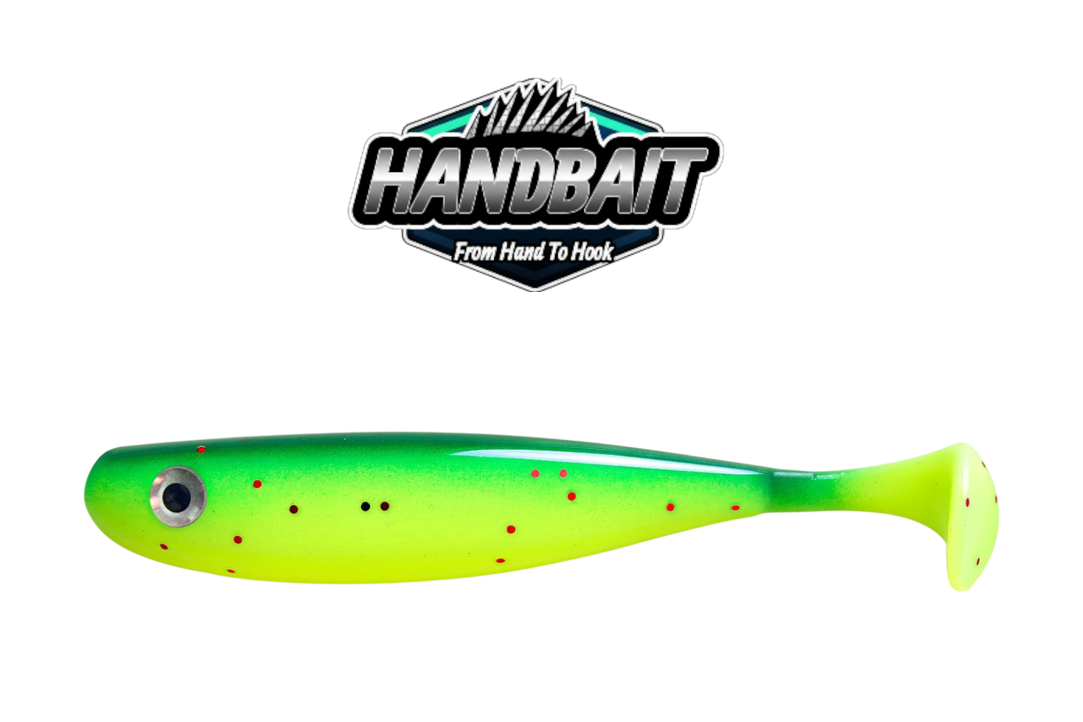 Der Handbait Gummifisch im Dekor „Cheesy“ überzeugt mit einem knallig gelb-grünen UV-Aktiv-Finish und auffälligen roten Akzenten, die für zusätzliche Reizwirkung sorgen. Durch die starke Farbgebung ist dieser Köder besonders effektiv bei trübem Wasser, schlechtem Licht oder tiefen Angelplätzen.